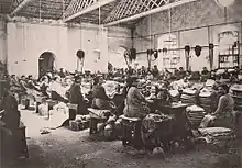 The new century began with a gradual consolidation of the 'Società degli Alti Forni e Fonderie di Terni' in the field of the war industry: it stimulated technical research into new forms of steel casting and rolling, divested the old converters and acquired the more modern Martin-Siemens, of which it patented a variant called 'Martin-Terni,' which spread throughout the world steel industry of the time.[75] In the Terni factories the shells of the ships Ruggero di Lauria[76] were built with the Schneider method, with nickel steel the shells of the ships Francesco Ferruccio, Benedetto Brin, Regina Margherita, and with a method devised by his steel engineers, moreover similar to the Krupp system, the shells of the ships Regina Elena, Andrea Doria, Roma, Conte di Cavour, Giulio Cesare[77] and Vittorio Emanuele.[78] In 1905 he founded, in La Spezia, with the English Vickers, a factory for the production of naval cannons. He began production not only of armor for battleships but also of cannon and shell components during World War I, at least until the opening of the Ansaldo factories in Genoa.[79] In 1922, after acquiring the 'Italian Society for Calcium Carbide, Acetylene and Other Gases,' which also controlled STET,[80] a company that operated the urban tramway service and that of the Terni-Ferentillo tramway, it expanded into the energy sector, with the acquisition of all existing hydroelectric power plants, and into the chemical sector, changing its name to 'Terni Society for Industry and Electricity'.[81] The 'Arms Factory' produced weapons of various types, including the Carcano Mod. 91, which equipped the Italian army for many years: during World War I it churned out more than 2,000 rifles a day; among other things, one of these examples, produced in Terni in 1940 ended up in the hands of Lee Harvey Oswald and was used by him in the assassination of John Fitzgerald Kennedy on November 22, 1963.[82][83][84] The 'Bosco' established itself in constructions for aircraft hangars and in 1924 began the production of metal products, such as hydroextractors, autoclaves, and kettles.[85] By 1927 the 'Lanificio e Jutificio Centurini' was, in terms of employees and production, the second Italian factory in the sector;[86] in the 1920s the 'Tipografico Alterocca' put 30% of the picture postcards that were printed in Italy on the market.[87]