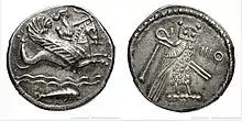 Tyre's economy continued to rely largely on the production of purple dye from Murex shellfish, which appeared on a silver coin of Tyre around 450–400 BCE,[13] when the city started minting its own currency. Other motives on coins included dolphins.[11]