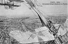 Some minor warfare use was made of balloons in the infancy of aeronautics. The first instance was by the French Aerostatic Corps at the Battle of Fleurus in 1794, who used a tethered balloon, L'entreprenant, to gain a vantage point.[5][6][7]
