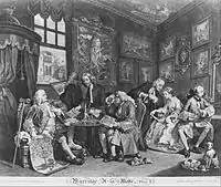 - ↑ Baron, Bernard. "Marriage à la Mode Plate 2 (Early in the Morning)". Savannah College of Art and Design. Archived from the original on December 26, 2013. Retrieved Feb 4, 2013.