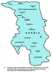In 1941, after the Axis invasion and occupation of Yugoslavia, German occupational authorities created an occupied territory named Serbia and installed a Serbian puppet government there.[10][11] Occupied Serbia included much of the territory of the present-day Republic of Serbia, excluding some areas that were occupied and annexed by the Independent State of Croatia, Hungary, Bulgaria, and Italy. The Banat region, which was part of occupied Serbia, had a special autonomous status and was governed by its ethnic German minority. Besides the armed forces of the Serbian pro-Axis puppet regime, two anti-Axis resistance movements operated in the territory of Serbia: the royalist Chetniks and the communist Partisans. The two resistance movements also turned one against another, which resulted in a general armed civil war in Serbia. Temporarily, in the autumn of 1941, the communist resistance movement created a short lived Republic of Užice in south-western Serbia,[12] but this entity was soon destroyed by the joint efforts of Axis troops and pro-Axis Serbian armed forces.