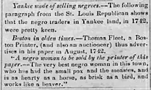 - ↑ Harper, Douglass. "Slavery in Massachusetts". Slavery in the North. Retrieved 2007-06-10.