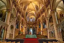 The Church of Ireland, an Anglican establishment, was disestablished in Ireland in 1869.[78] The Church in Wales would later be disestablished in 1919, but in England the Church never lost its established role. However Methodists, Catholics and other denominations were relieved of many of their disabilities through the repeal of the Test and Corporation Acts, Catholic emancipation, and parliamentary reform. The Church responded by greatly enlarging its role of activities, and turning to voluntary contributions for funding.[79]