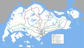 Schematic map of the Mass Rapid Transit (MRT) and Light Rail Transit (LRT) network in Singapore (an official version can be found at the Land Transport Authority's website).