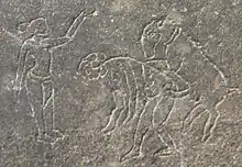 From the Neolithic onwards, images of zoophilia are slightly more common. Examples are found at Coren del Valento, a cave in Val Camonica, Italy, containing rock art dating from 10,000 BCE to as late as the Middle Ages, one depicting a man penetrating a horse,[7] and Sagaholm, a Bronze Age cairn in Sweden where several petroglyphs have been found with similar scenes.[8]