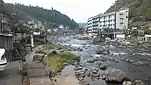 The Mikuma River running through Hita. Hita Hot Springs in the centre picture and Kizan Park in the foreground.