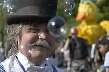 In 1969, Hobart started the Kinetic Sculpture Race, almost by accident when he modified his son's tricycle to a five-wheeled, decorated "Pentacycle" and another local artist and gallery owner, Jack Mays, challenged him to a race down Main Street on Mother's Day.[4] Raceday came, so did ten other challengers. Neither Hobart nor Jack won the race, that honor went to Bob Brown (no relation) piloting his Kinetic Turtle.[5] Hobart was acclaimed "the Glorious Founder" of the race.[6]