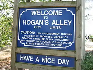Hogan's Alley is a tactical training facility operated by the FBI Training Academy near Quantico, Virginia. Spread over more than 10 acres (4 ha), Hogan's Alley was opened in 1987 and was designed to provide a realistic urban setting for training agents of the FBI, DEA, and other local, state, federal and international law enforcement agents.[1] It is also occasionally used as an urban combat training venue for lieutenants at the United States Marine Corps' The Basic School, which is located nearby. The term "Hogan's Alley" is also used generically to refer to any shooting range devoted to tactical training.