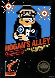 Hogan's Alley[lower-alpha 1] is a light gun shooter video game developed and published by Nintendo. It was released for the Family Computer in 1984 and then the arcade Nintendo VS. System and Nintendo Entertainment System in 1985. It was one of the first hit video games to use a light gun as an input device, along with Nintendo's Duck Hunt (1984). The game presents players with "cardboard cut-outs" of gangsters and innocent civilians. The player must shoot the gangs and spare the innocent people. It was a major arcade hit in the United States and Europe.