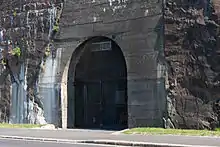 Tunnel construction began in 1941, shortly before Hitler's October 1941 decree that the islands be defended.[2] The tunnels were constructed at strategic points around the island. Most of the tunnels were for shelter or storage, but some were used as part of and to link fortifications in strong points (such as at Corbière) and were part of casemates.[2] The tunnels were constructed by the Festungsbaubataillone (fortress construction battalions), 4/Gesteinsbohr-Kompanie Btl. 77 (specialist mining battalion), the RAD (state labour for 17- and 18-year-olds) and the Organisation Todt.[2] The Germans used a variety of labour sources, most being forced.[1] After Todt's death in February 1942, Albert Speer drastically reduced the resources available for the construction of tunnels on the island.[2] During 1944, there was a shortage of raw materials, so effort was diverted to finish only the most complete tunnels. On 9 May 1945, construction stopped with the liberation of Jersey.