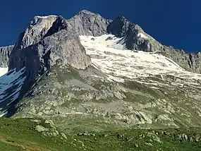 - ↑ Retrieved from the Swisstopo topographic maps and Google Earth. The key col is located west of the summit at 3,175 metres.