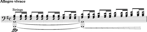 The orchestral version replaces these with chords repeated in a dactylic rhythm: