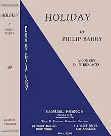 Holiday is a 1928 play by Philip Barry which was twice adapted to film. The original play opened in New York on November 26, 1928, at the Plymouth Theatre and closed in June 1929, after 229 performances. It was directed by Arthur Hopkins, set design by Robert Edmond Jones, and costume design by Margaret Pemberton.
