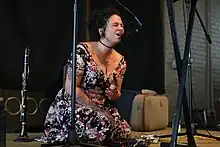 Two years later, Andrews secured a Creative Exchange Lab residency at PICA.[11] There, they met Rwandan-born singer-songwriter and choreographer Dorothee Munyaneza, who they would eventually begin a collaboration.[6] That same year, Andrews performed as part of a septet of artists in the Portland Jazz Composer's Ensemble. Their music and visual graphics focused on their work about trauma, and healing by music. The group featured Andrews as composer and vocalist; Douglas Detrick, trumpet and music director; Reed Wallsmith, alto saxophone; Ian Christensen, tenor saxophone; Lars Campbell, trombone; Jon Shaw, bass; and Ken Ollis, drums.[12] They toured internationally for two years.[6]