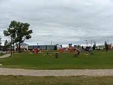 In 1999, a large renovation of the park was started as a millennium project. A water park, a clock tower, new playground equipment and a bandstand were erected in the newly renovated park. New trees were also planted following a large windstorm in July 1999 which knocked down many of the large willow trees that had graced the park for many years.