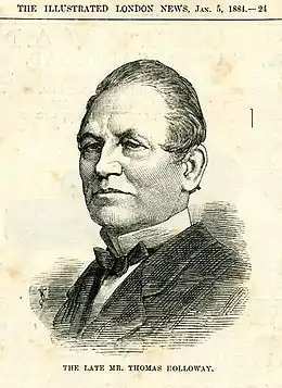 - 1 2 Corley, TAB (2004). "Holloway, Thomas (1800–1883)". Oxford Dictionary of National Biography (online ed.). Oxford University Press. doi:10.1093/ref:odnb/13577. Retrieved 4 April 2013. (Subscription or UK public library membership required.)
