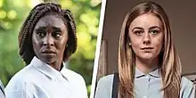 ![]() Cynthia Erivo as Holly Gibney in The Outsider (2020) and Justine Lupe as Holly Gibney in Mr. Mercedes (2017) | |
