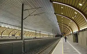 The new Holmestrand Station is a railway station on the Vestfold Line located in the town of Holmestrand in Vestfold, Norway, that opened for traffic on 28 November 2016.[1] It is located inside the tunnel Holmestrandsporten.