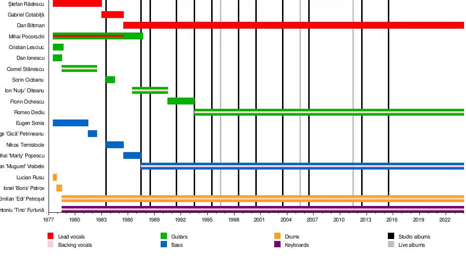 - Mihai Pocorschi – guitar, lead vocals, backing vocals (1977–1986)