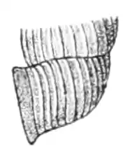 Drawing of lateral view of part of shell of Holospira bilamellata.