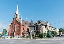 Holy Family Church is a parish church of the Roman Catholic Diocese of Columbus, in the Franklinton neighborhood of Columbus, Ohio. The congregation was founded in 1877 and the current church was completed in 1889. The Mercerdarians took over pastoral care of the church in 2022.