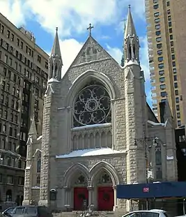 The church is a double-height-over-basement stone structure with a rectory,[1] and is located within the Central Park West Historic District, designated 1990 by the New York City Landmarks Preservation Commission.[3]