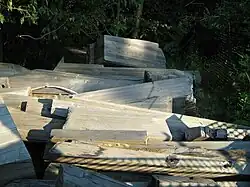 In June 2005, the college tore it down with a backhoe, citing safety concerns due to an ant infestation and other animals degrading the structure.[3] Davies' son Bryan evaluated the damage as only superficial and contended the sculpture could have been repaired.[1] In negotiations about compensation to Davies for the destruction, the Davies family proposal included an apology and commissioning of a new $60,000 sculpture by Davies. Lambton College was unwilling to fund a new piece and unlikely to apologize stating, "we believe Lambton was well within its moral and legal rights". The college president Tony Hanlon in an email to Bryan sought assurances that there would be no further public criticism of the college. Bryan Davies stated, "My father cannot, in good conscience, agree not to speak out".[4] In 2006, Davies sued the college for $1.2 million, contending the college failed to maintain the structure.[5] Davies died in 2008 and the lawsuit was settled in 2010, with the details not made public.[6]