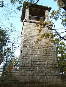 The Homburg Watchtower (German: Homburgswarte) is an observation tower on the site of a Germanic refuge castle (Fliehburg) near the Hexentanzplatz above the town of Thale in the Harz Mountains of central Germany.