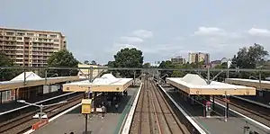 Homebush railway station is a heritage-listed railway station located on the Main Suburban line in Homebush in the Municipality of Strathfield local government area of New South Wales, Australia. It was designed and built by the New South Wales Government Railways and opened on 26 September 1855. In addition to being located on the Main Suburban line, the station is also located on the Main South and Main Western railway lines. The property was added to the New South Wales State Heritage Register on 2 April 1999.[2]