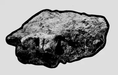 On July 19, 1963, a team funded by the Chinese Institute of Vertebrate Palaeontology and Palaeoanthropology (IVPP) recovered a fossil human mandible (lower jawbone) outside Chenchiawo Village, Lantian County in the Shaanxi Province of Northwest China. It was found in the bottom end of a 30 m (98 ft) thick layer of reddish clays, atop a metre-thick (3 ft) layer of gravel.[1] Lantian is situated on the Loess Plateau, which is geologically stratified into alternating units of loess (wind-blown sediment deposits) and paleosol (soil deposits).[2] The mandible was formally described by Chinese palaeoanthropologist Woo Ju-Kan (吴汝康) in 1964, who noted its similarity to the Peking Man (at the time "Sinanthropus" pekinensis), and provisionally classified it as "Sinanthropus" lantianensis.[1] This spurred further investigation of Lantian County, which recovered a human tooth by the end of the May 1964 and the rest of the skull by October,[3] at the Gongwangling site at the foothills of the Qinling Mountains.[2] Woo also assigned it to "S." lantianensis, but later that year, he recognised the genus was falling out of favour and was being synonymised with Homo erectus. He recommended the combination Homo erectus lantianensis.[4] Nonetheless, the skull is too distorted to morphologically assess Lantian Man's relationship with other H. erectus populations, so it is unclear if Lantian Man and Peking Man are more closely related to each other than Java Man (H. e. erectus).[5]