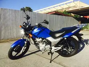 The Honda CB125E is a 125cc four-stroke commuter motorcycle, manufactured by the Honda Motor Company. It has electric start and a five-speed gearbox. The engine produces approximately 10 hp (7 kW; 10 PS). The bike is equipped with front disc and rear drum brakes. Electrics are 12 volt with capacitor discharge electronic ignition and the machine is electric start only.
