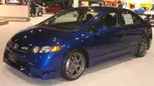 The car comes with a 2.0-liter K20Z3 i-VTEC engine that produces 197 hp (147 kW; 200 PS) and 139 lbf⋅ft (188 N⋅m) of torque, while including a 6-speed manual transmission with a helical limited-slip differential.[6] 40% stiffer spring and dampening rates from the non-Si trims and stiffer sway bars have bolstered the Civic Si's handling,[13] with the car achieving 0.90g (8.8 m/s2) of lateral acceleration on the skidpad. It was also the quickest Civic Si off the line, with a factory 0–60 time of 6.7 seconds according to Honda.[14] Some new features include a sunroof, a seven-speaker 360-watt sound system, 17-inch alloy wheels with Michelin all-season tires, and keyless trunk access. Brazilian market Si's have a 192 hp (143 kW; 195 PS) version of the K20 engine designated K20Z5.
