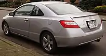 All coupes come standard with a rear lip-spoiler, while EX models have round chrome finish on the exhaust pipe. Coupes are intended to be sportier than their sedan counterparts, they have a more aggressive suspension set up consisting of firmer spring rates and thicker anti-roll bars coupled with adjusted damping settings.[12] Civic models with a moonroof have slightly less interior space due to reduced headroom.