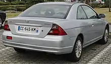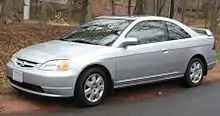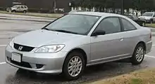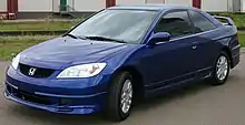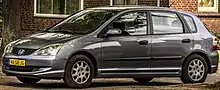 The seventh-generation Honda Civic is an automobile produced by Honda from 2000 until 2005. It debuted in September 2000 as a 2001 model. Its exterior dimensions stayed similar to the outgoing predecessor, with interior space significantly increased, bumping it up to the compact car size designation. A notable feature was the flat rear floor that gave better comfort to the rear seat passengers. This generation abandoned the front double wishbone suspension, used previously from fourth to sixth generations, replacing it with MacPherson struts. This generation was the last to offer 4WD variants.