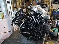 The engine as well as the cycle are entirely specific, with very few common parts. The Honda VF500 engine was also used almost entirely unchanged in the Magna V30 standard motorcycle during the same years.