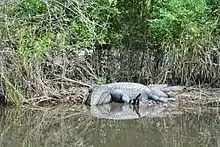 Some native fauna that inhabit the Honey Island Swamp include the American alligator, alligator snapping turtle, red-eared slider, Western cottonmouth, speckled kingsnake, coypu, red fox, Louisiana black bear, bobcat, Virginia opossum, raccoon, muskrat, American mink, brown pelican, barred owl, bald eagle, red-tailed hawk, egretta, great blue heron, alligator gar, largemouth bass, and the paddlefish.[3]