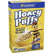 Honey Puffs (formerly sold in Australia under the name Honey Weets) is a breakfast cereal produced by Sanitarium Health and Wellbeing Company and sold in New Zealand and formerly sold in Australia. It is made by puffing pieces of wheat and lightly coating them all over with honey.