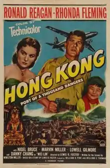 Hong Kong is a 1952 American adventure film directed by Lewis R. Foster and written by Winston Miller. The film stars Ronald Reagan and Rhonda Fleming, and the lead supporting actors are Nigel Bruce, Marvin Miller, Mary Somerville and Lowell Gilmore. The film was released on January 12, 1952 by Paramount Pictures.[2][3][4] It was rereleased in 1961 under the title Bombs Over China.