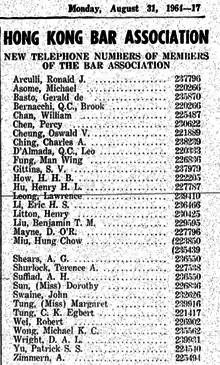 - ↑ Hamlett, Tim (4 May 2023). "The Hong Kong Bar Association's endangered reputation, and the seven-year itch". Hong Kong Free Press HKFP. Retrieved 4 May 2023.