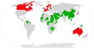 The United Kingdom and 26 other countries, mostly in the West, as well as Japan, condemned the national security law; the United Kingdom called it a breach of the 1984 Sino-British Joint Declaration, which provided autonomy for Hong Kong to be retained for 50 years.[9] The imposition of the national security law move prompted measures to put forward relaxed immigration laws for Hong Kong migrants by countries such as Australia, Canada, the United Kingdom and the United States. The controversial law has also garnered particular attention to its Article 38, which states that the law is applicable also to those who are not permanent residents of Hong Kong, and to those who do not reside there; the provision has been interpreted by some as saying that it is applicable to every individual in the world.[10]