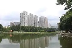 Honghu Park (simplified Chinese: 洪湖公园; traditional Chinese: 洪湖公園; pinyin: Hónghú Gōngyuán) is a public, urban park in Luohu District, Shenzhen, Guangdong, China.[1] Located in Luohu District, Honghu Park is bordered by Sungang Bridge on the South, Honghu West Road on the West, Nigang Bridge on the North, and Honghu East Road and Wenjin North Road on the East. It is a comprehensive park of the theme of lotus, with water activities as feature entertainment activities.[2] It covers an area of 591,500-square-metre (6,367,000 sq ft), of which land area of 324,600-square-metre (3,494,000 sq ft), and water area of 266,900-square-metre (2,873,000 sq ft). Honghu Park was officially opened to the public in 1984. Established in September 1984, Honghu Park is a multifunctional botanical garden and scenic spot integrating scientific research, lotus species collection and display as well as tourism.