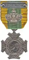 In 1877 King William III decided by royal decree that soldiers with an Honorable Mention were allowed to wear a silver crown on the ribbon or ribbon bar of the Dutch "Decoration for Important Military Acts" as decoration, together with a Roman numeral in case of multiple mentions. Hundreds of soldiers in the former Netherlands East Indies were awarded with these Honorable Mentions.