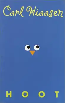 Hoot is a 2002 mystery/suspense novel, recommended for ages 9–12, by Carl Hiaasen.[1] The story takes place in Florida, where new arrival Roy makes two oddball friends and a bad enemy. Roy joins an effort to stop construction of a pancake house which would destroy a colony of burrowing owls who live on the site. The book won a Newbery Honor award in 2003.[2]