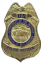 The Hoover Dam Police, officially the Bureau of Reclamation Police, was a federal security police force, stationed at Hoover Dam 23 miles (37 km) southeast of Las Vegas. Reclamation Police Officers were stationed only at Hoover Dam.[1] Hoover Dam was both listed on the National Register of Historic Places in 1981, and was designated a National Historic Landmark in 1985.[2][3] Hoover Dam has been designated as National Critical Infrastructure. The primary responsibilities of the Hoover Dam Police Officer were to protect the dam, the world's 57th-largest hydroelectric generating station, which provides about 2,080 megawatts,[4] its associated structures, and to safeguard the lives of visitors and employees. The Hoover Dam Police were assisted by unarmed Bureau of Reclamation Security Guards who control access to reclamation facilities and deter individuals who might consider criminal activities or terrorist acts.