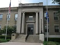 Hopewell Municipal Building is a historic municipal building located at Hopewell, Virginia. It was built in 1925, and is a three-story, nine-bay, rectangular, sandstone brick building in the Classical Revival style. Attached to the main building is a three-story annex built in 1957. The main entrance is a stone framed double door with a five pane transom window and a six foot deep portico with two stone unfluted columns on either side. The building houses city offices and the police department.[3]