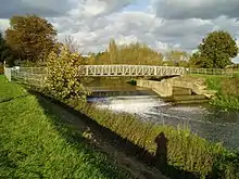 The weir and gauging station at Tattershall. Gibsons Cut turned off to the left, behind the green box.