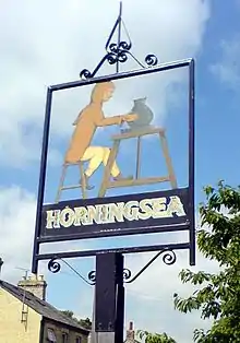 Listed as Horningesea in the Domesday Book, the village's name derives from either "Island (or dry ground in marsh) of a man called Horning" or "Island by the horn-shaped hill".[2][3]