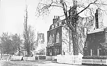 The name Hornsey has its origin in the Saxon period and is derived from the name of a Saxon chieftain called Haering. Haering's Hege meant Haering's enclosure. The earliest-written form of the name was recorded as Harenhg' in about 1195. Its development thereafter gave rise to the modern-day names of Harringay (the district of London), the London Borough of Haringey and Hornsey.[9] The church was first mentioned in 1291.[10] Hornsey Village developed along what is now Hornsey High Street, and in the seventeenth century it was bisected by the New River that crossed the village in three places: first at the end of Nightingale Lane, secondly from behind the Three Compasses and lastly, as it does now, at the bottom of Tottenham Lane. The village grew dramatically after about 1860 and eventually merged with the separate settlement at Crouch End (first mentioned in 1465),[11] to form an urban area in the middle of the parish.