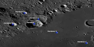 By convention these features are identified on lunar maps by placing the letter on the side of the crater midpoint that is closest to Horrebow.