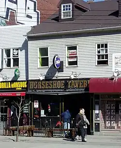 The building, erected in 1861, previously housed a blacksmith.[2] Originally an 87-seat saloon, it was advertised in recent decades as a "Country Roots n' Rockabilly Music Tavern". The Horseshoe Tavern welcomed blues and folk artists in the 1960s; reggae, mod, punk and new wave acts in the 1970s and 1980s; and then alternative rock and everything from ska, surf and swing to Celtic music and alternative country from the 1990s onward.